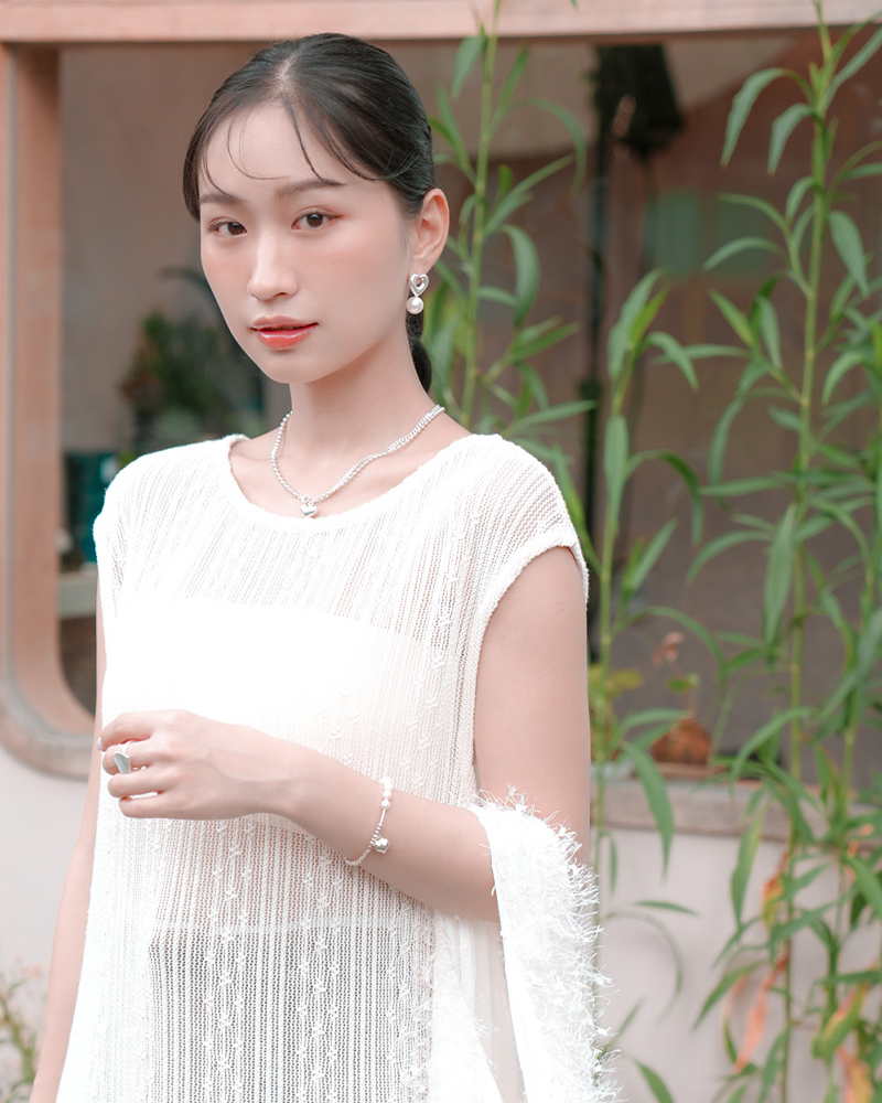 - 碎銀鏈體襯托珍珠的柔和光感