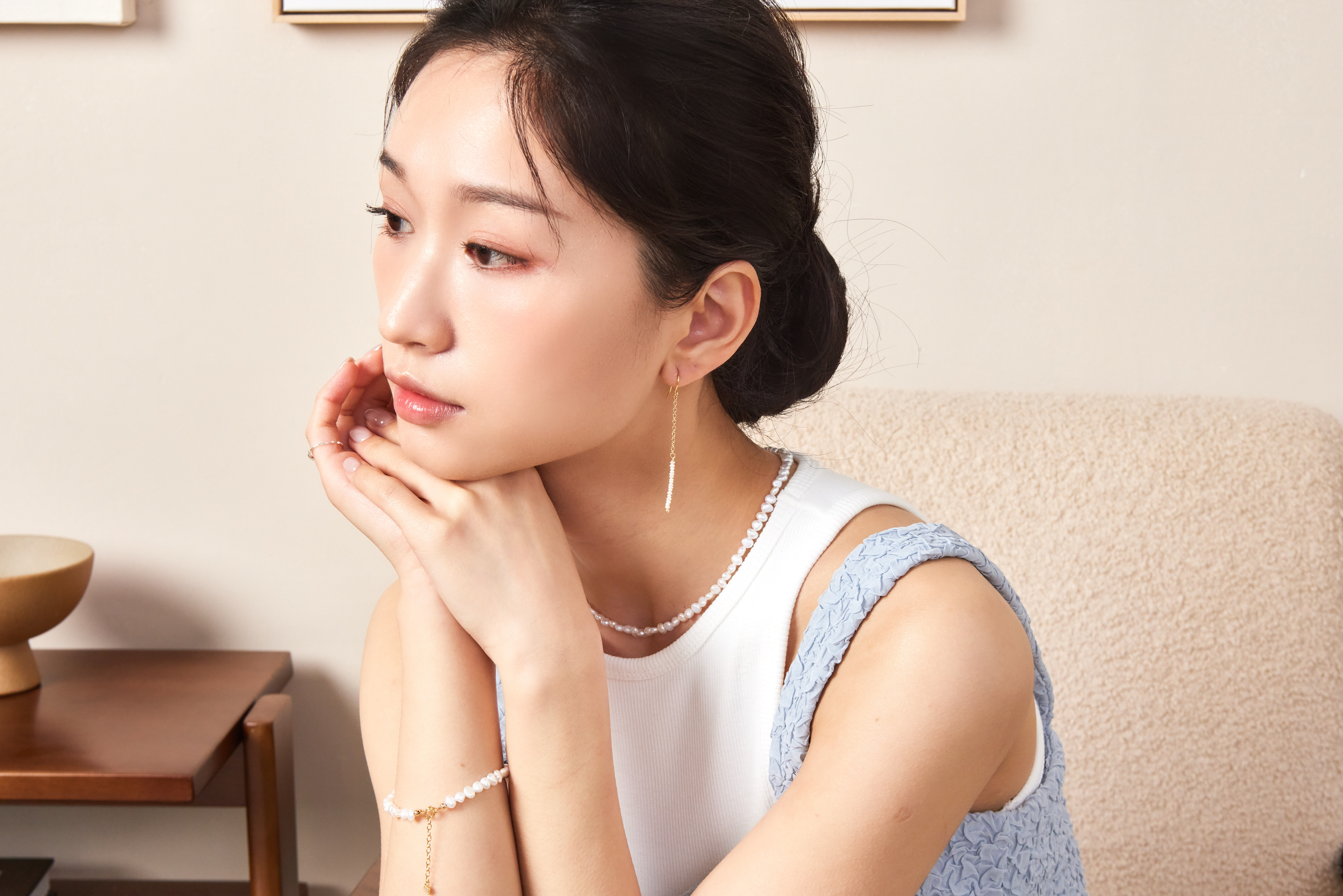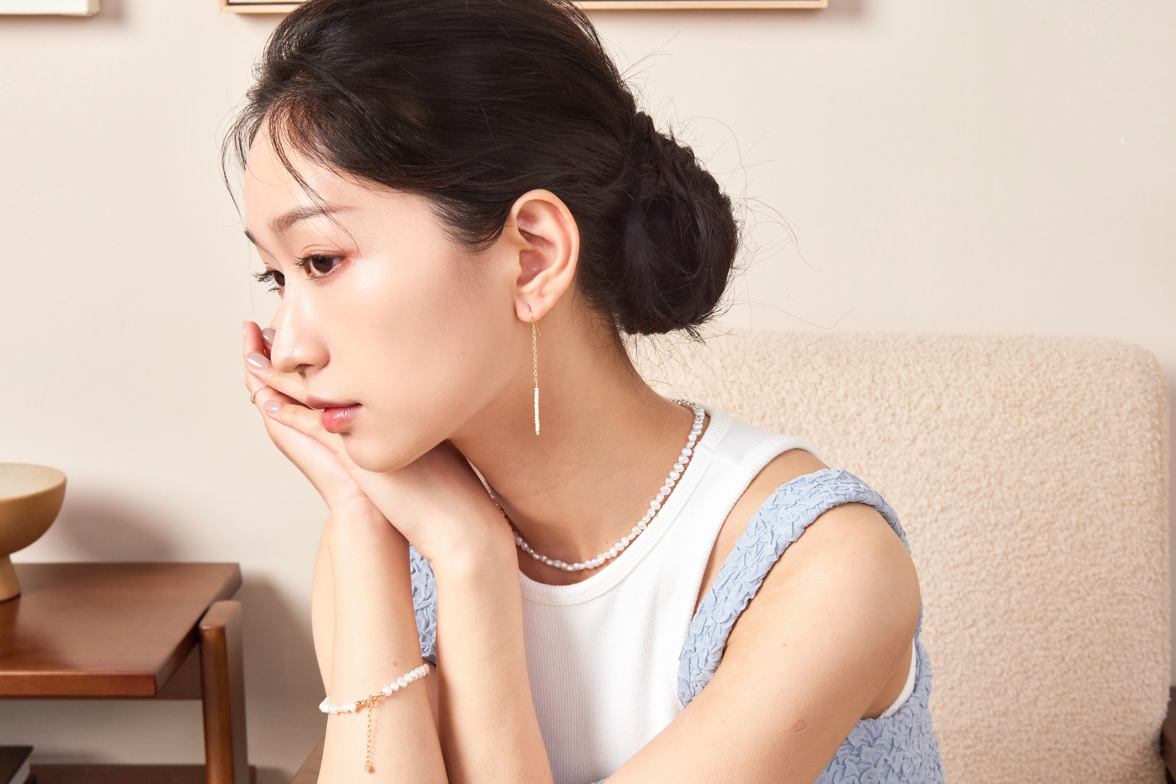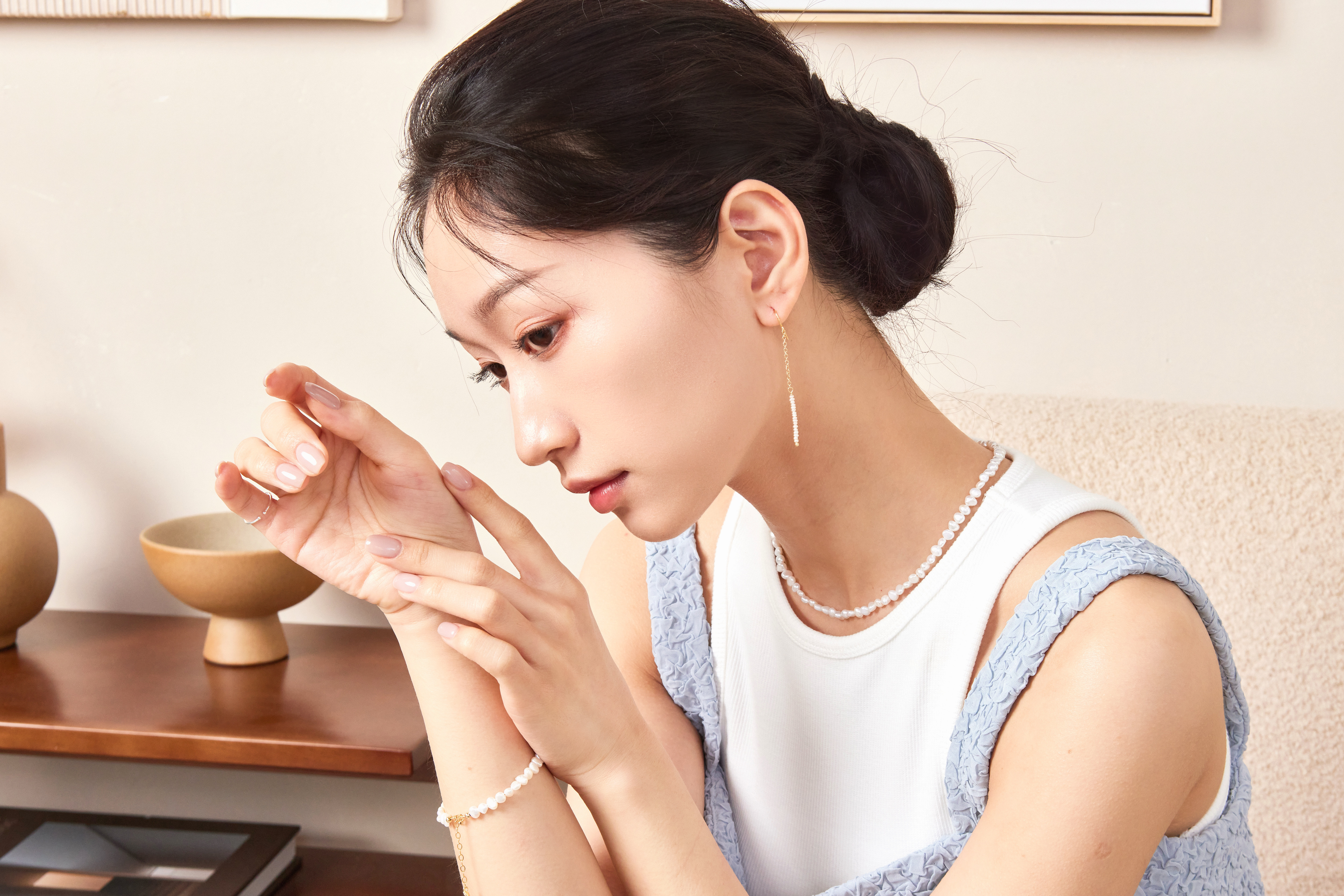 - 天然淡水珍珠低調中透出自然光澤。