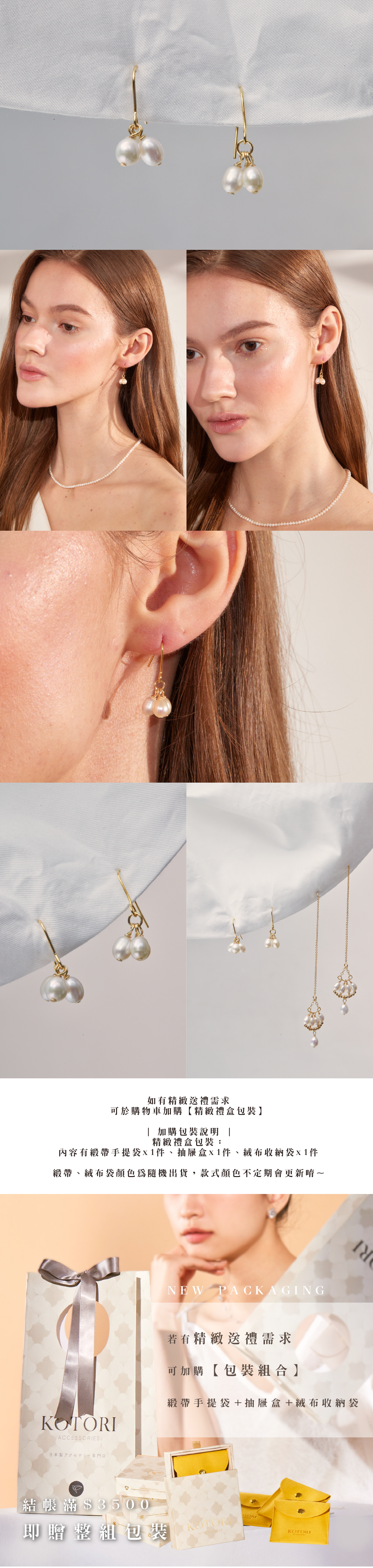 - 三顆垂墜珍珠,層次豐富優雅迷人