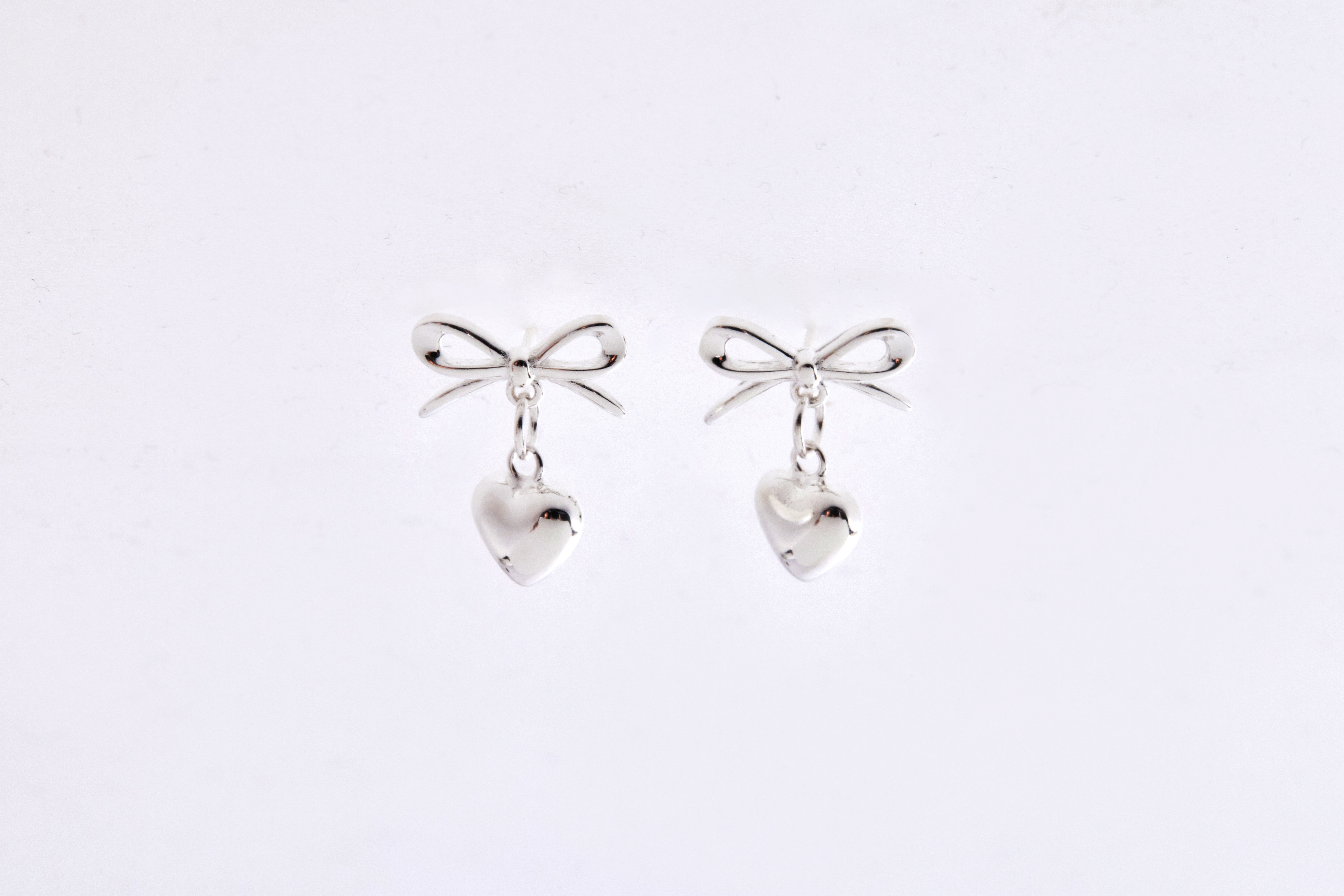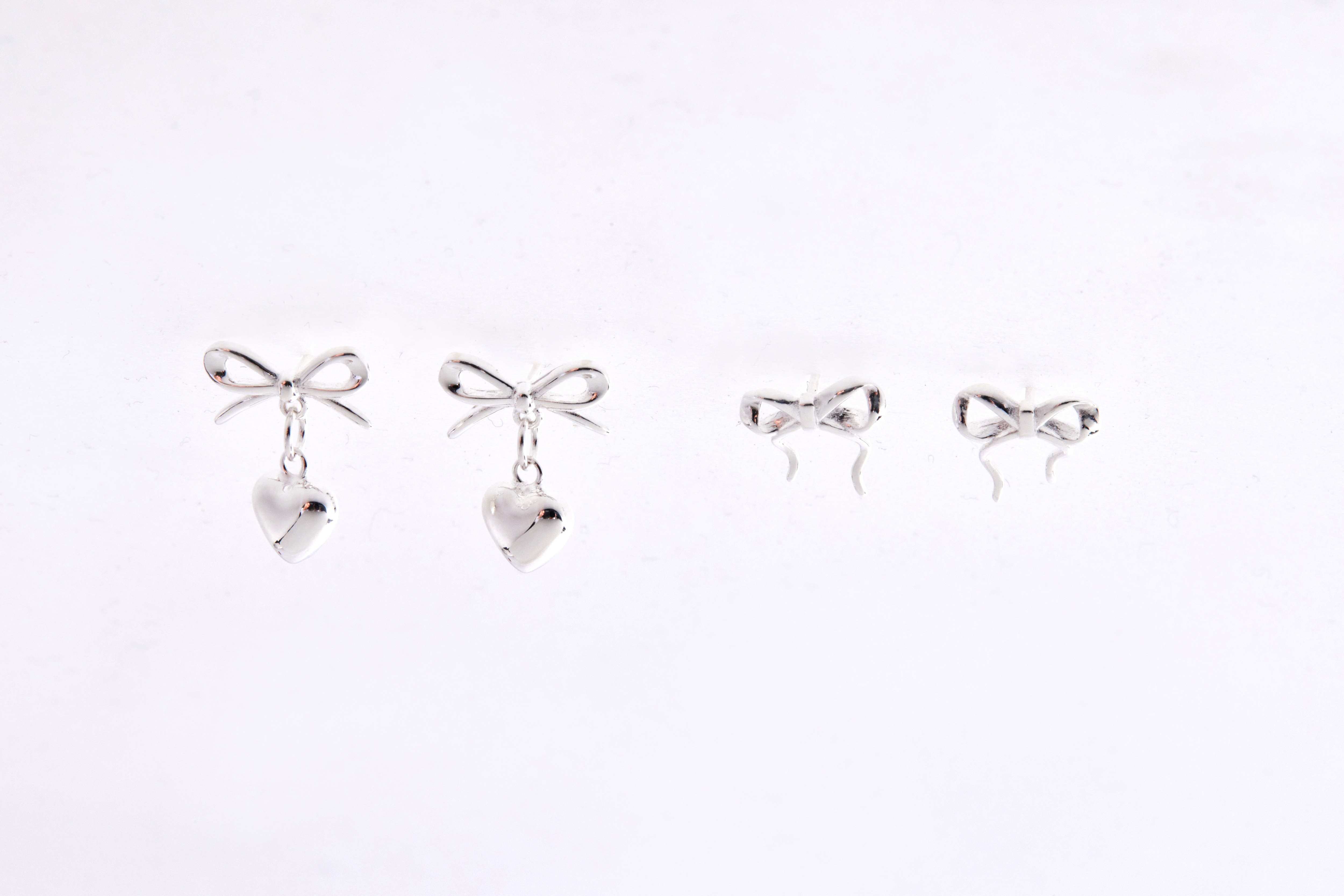 - 純銀材質,線條細緻的蝴蝶結造型。