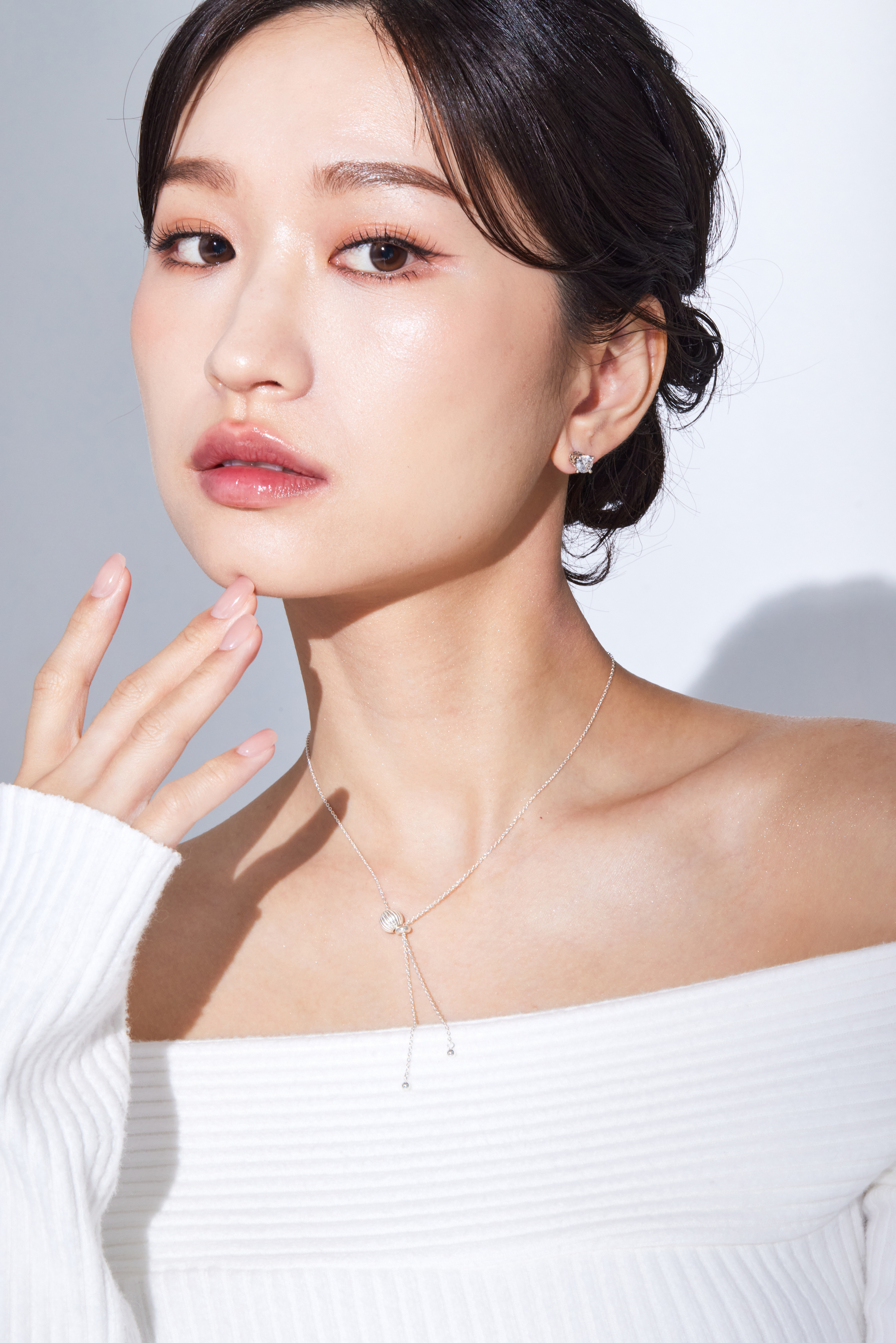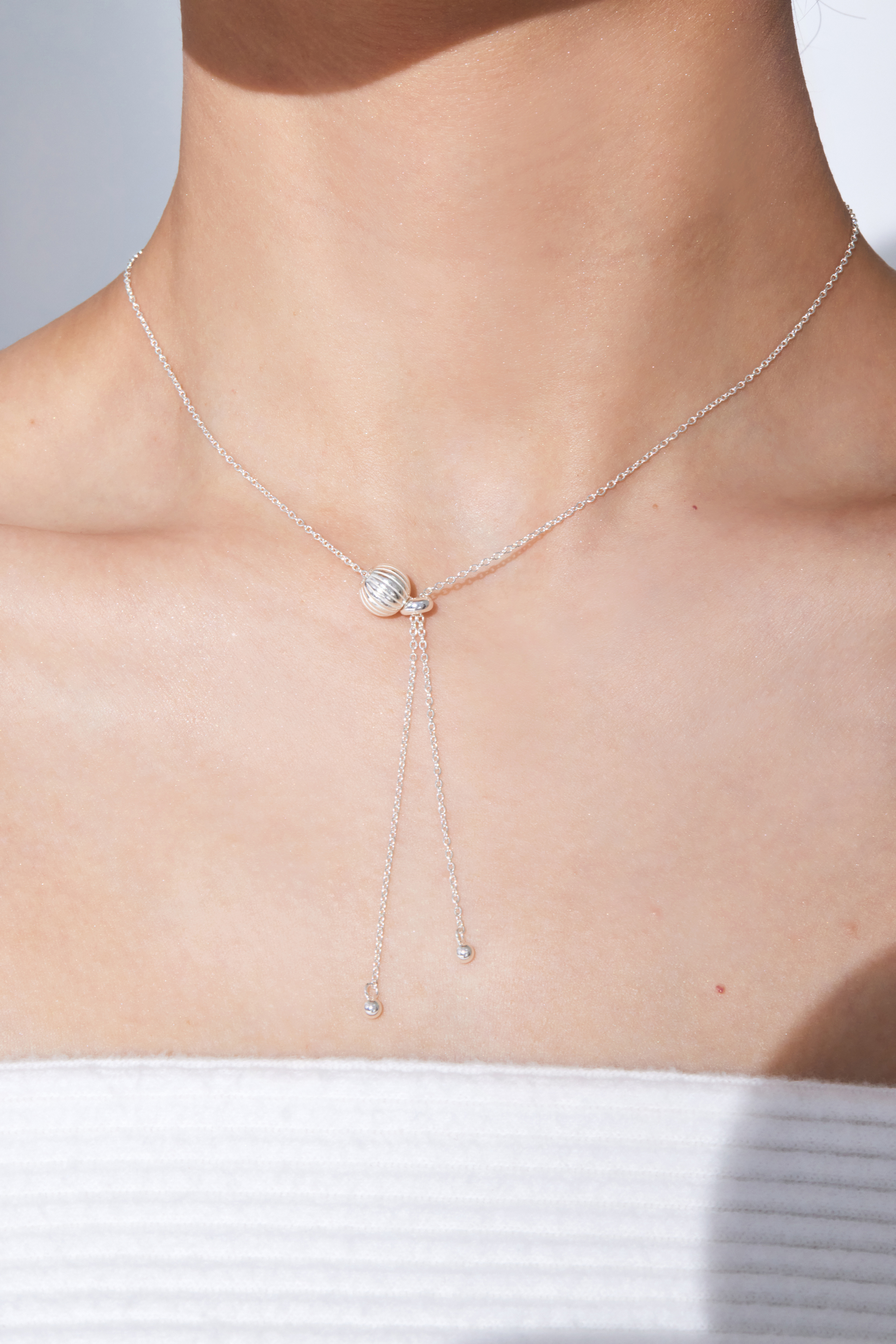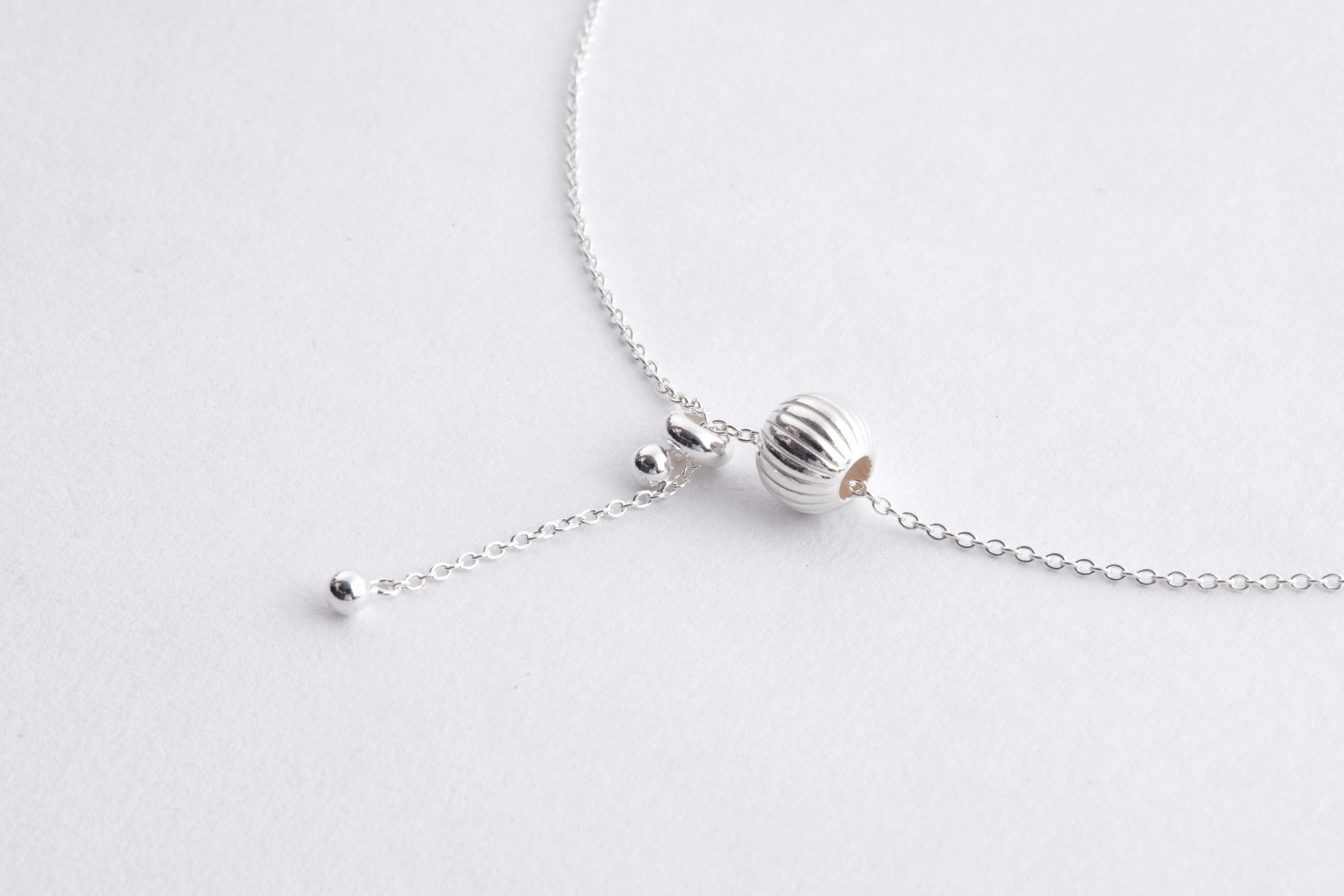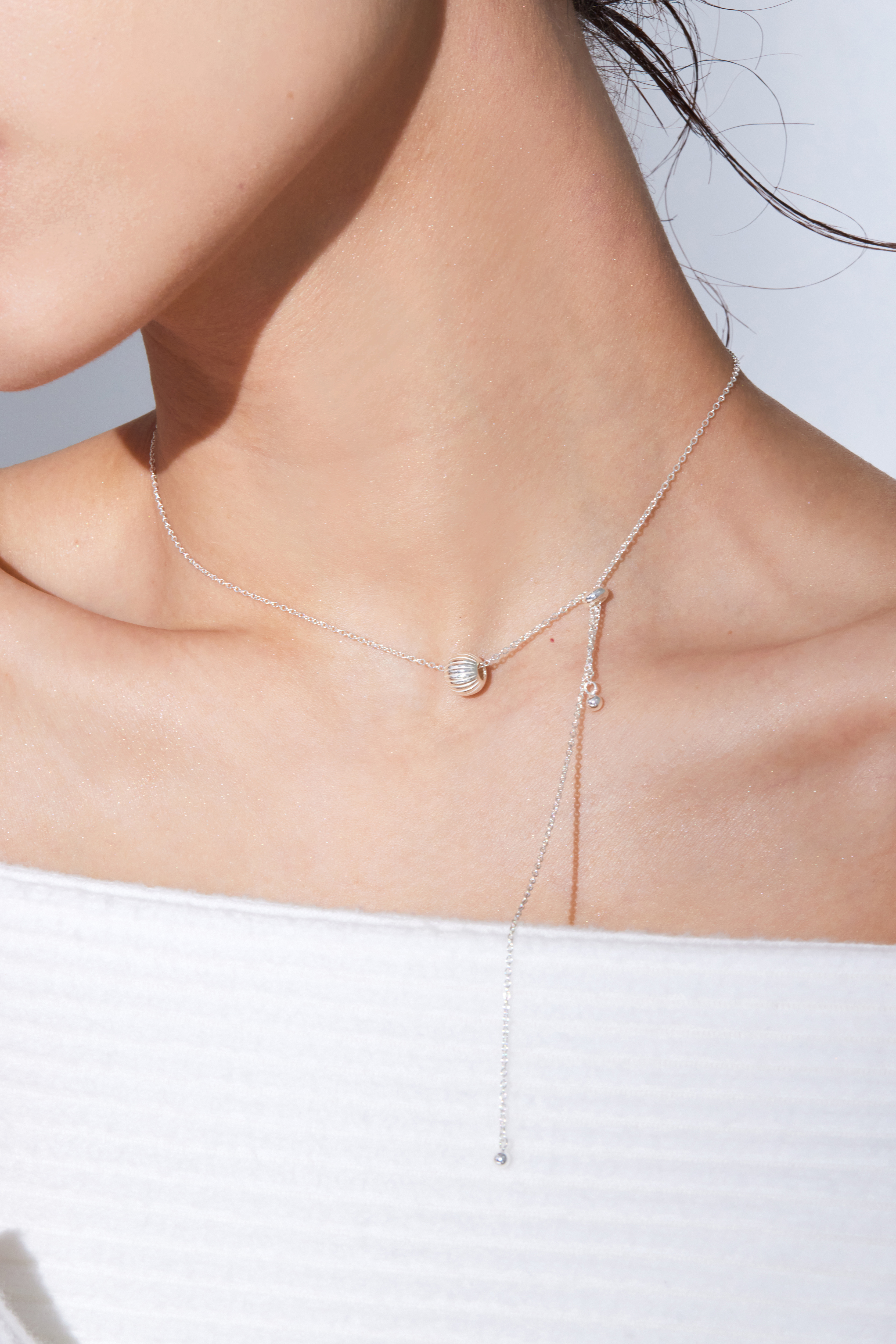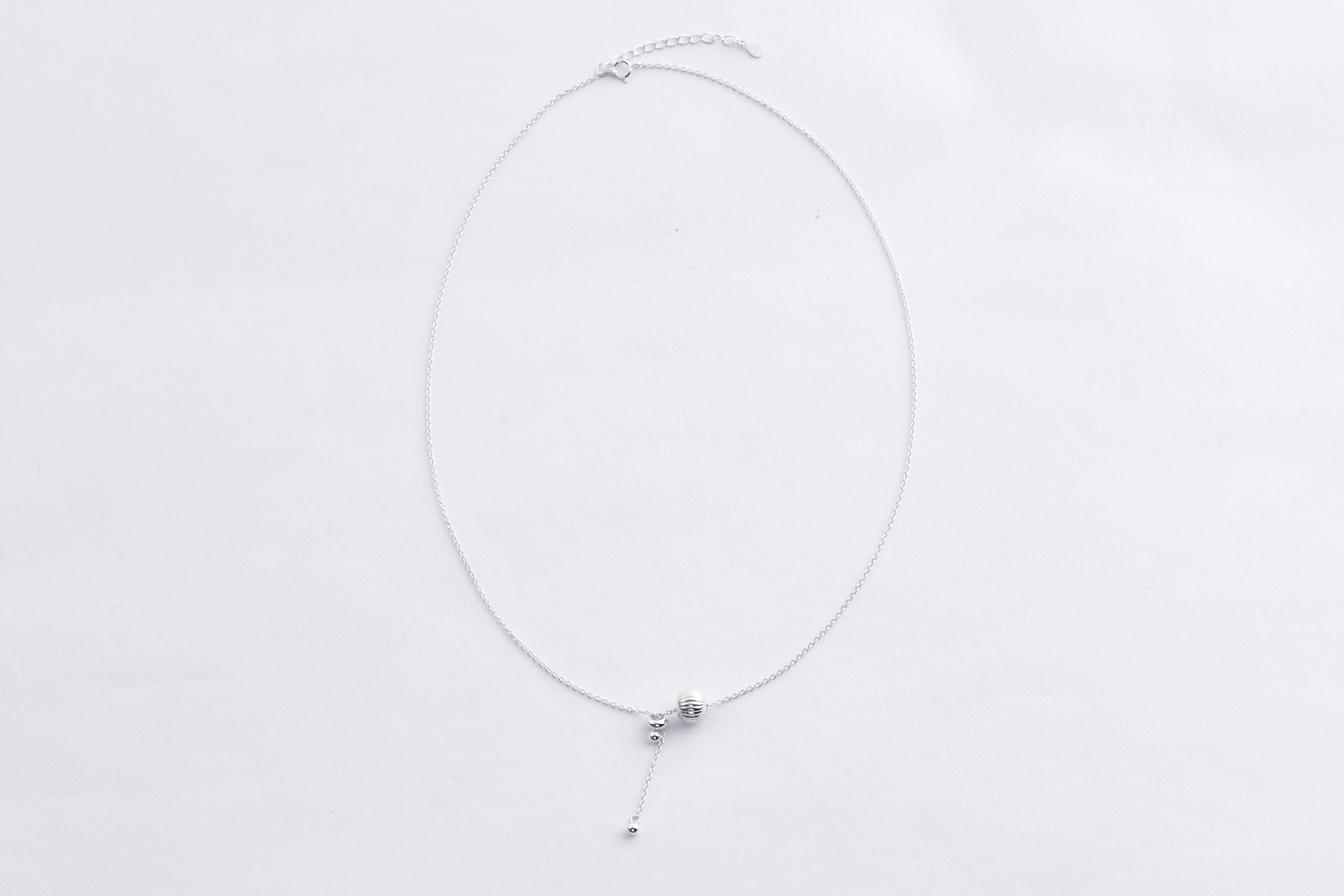 - 銀球搭配 Y 字鍊,簡約俐落。