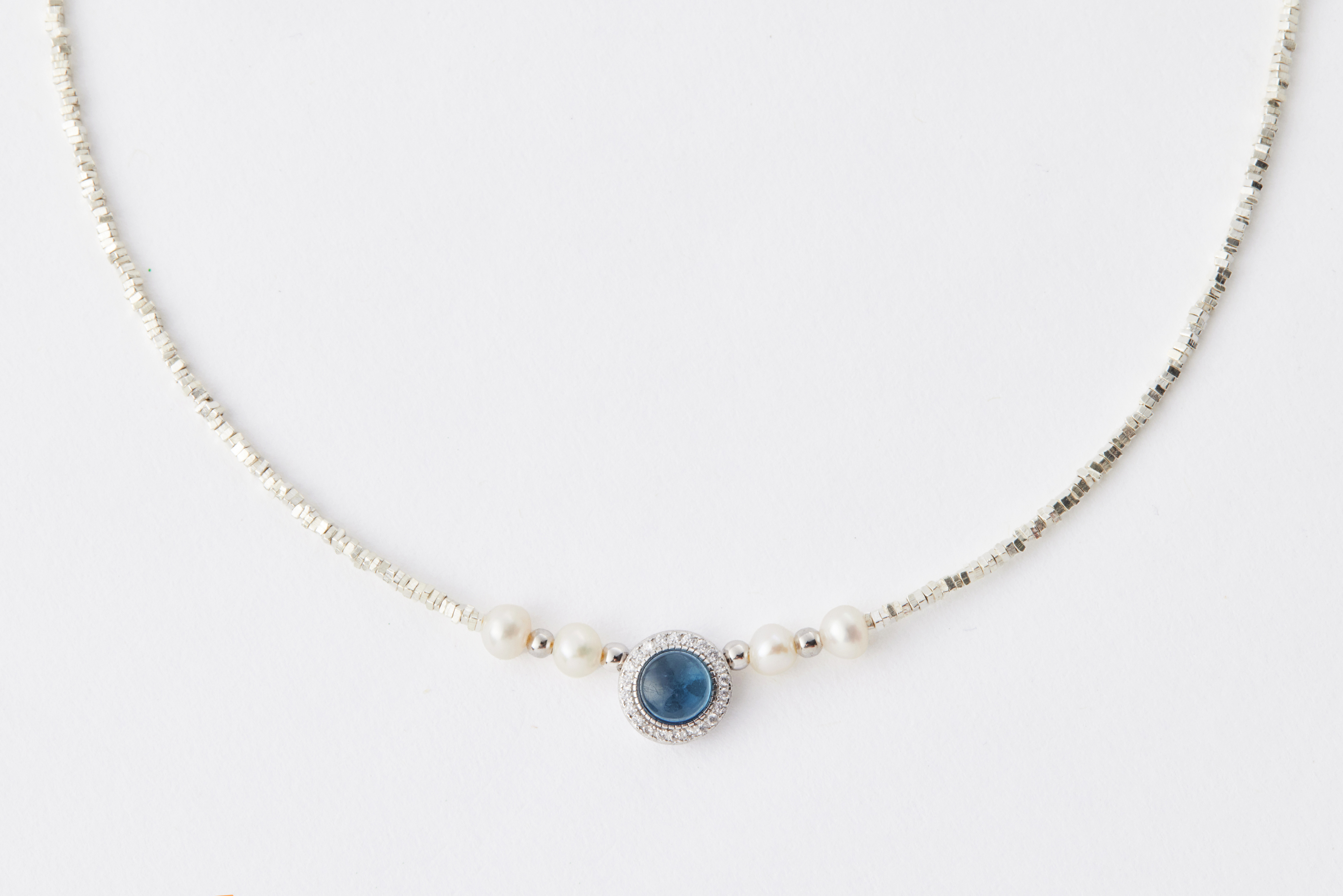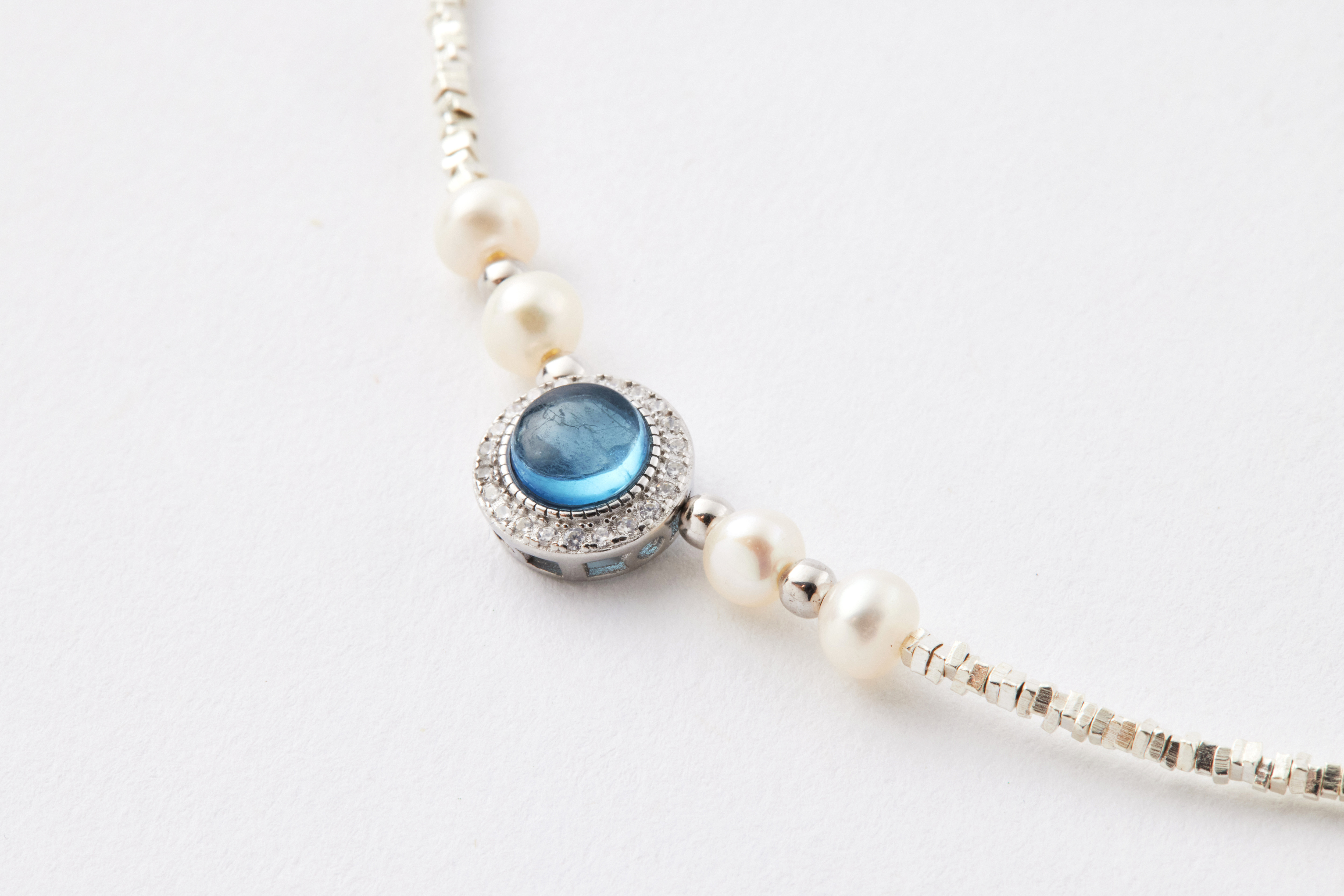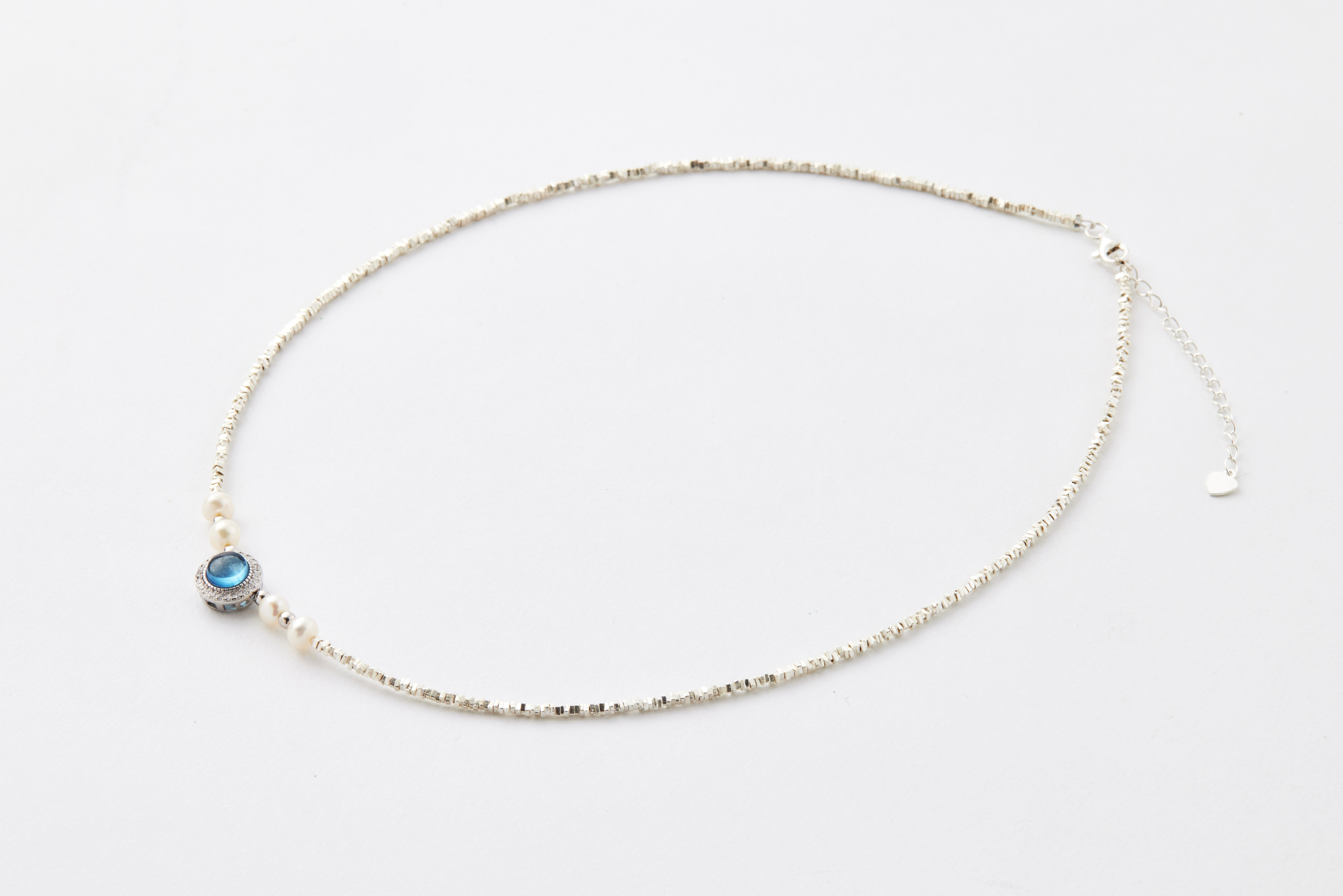 ● 尺寸:海藍寶約 0.7 cm、珍珠約 0.4 mm、銀珠約 0.2 cm