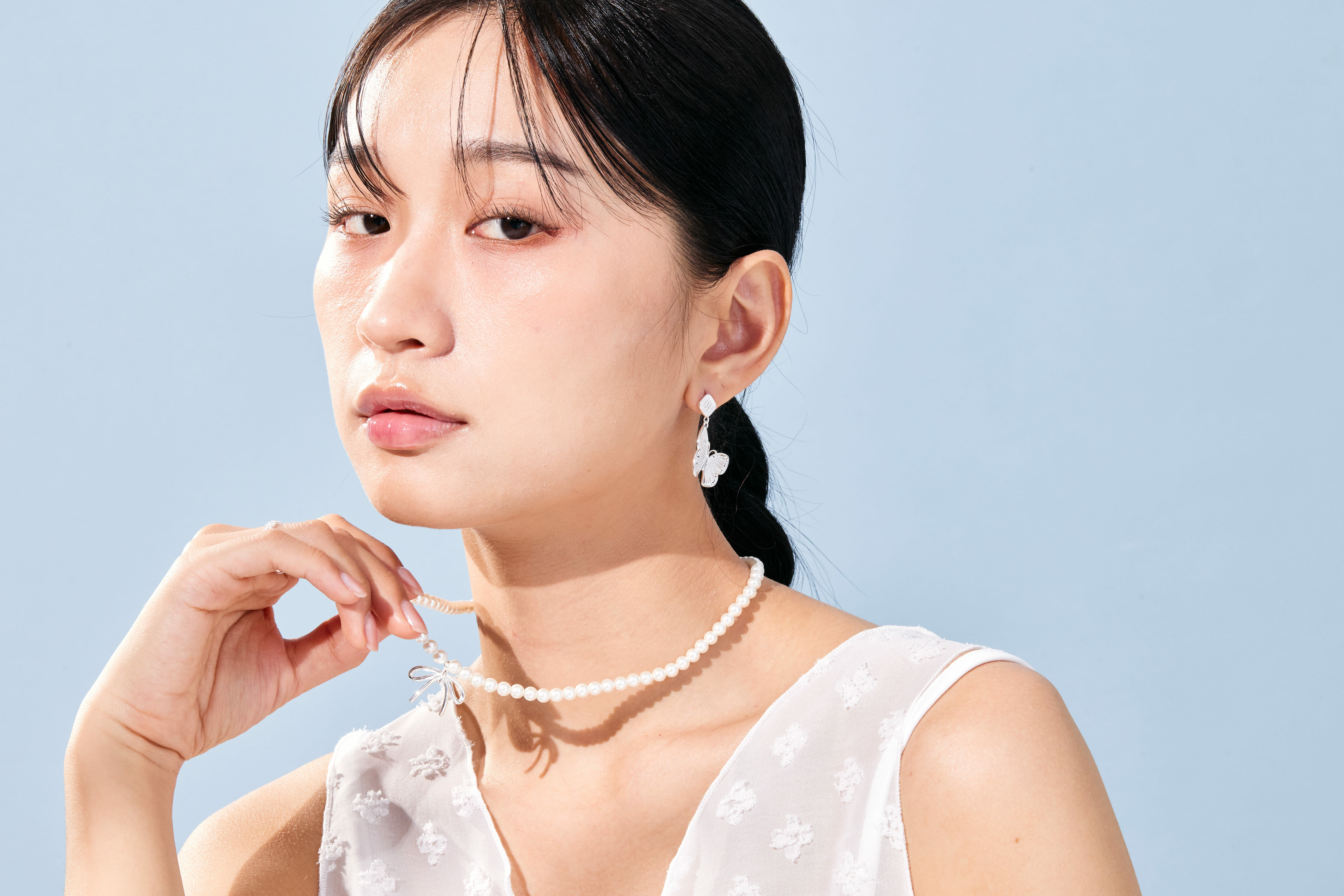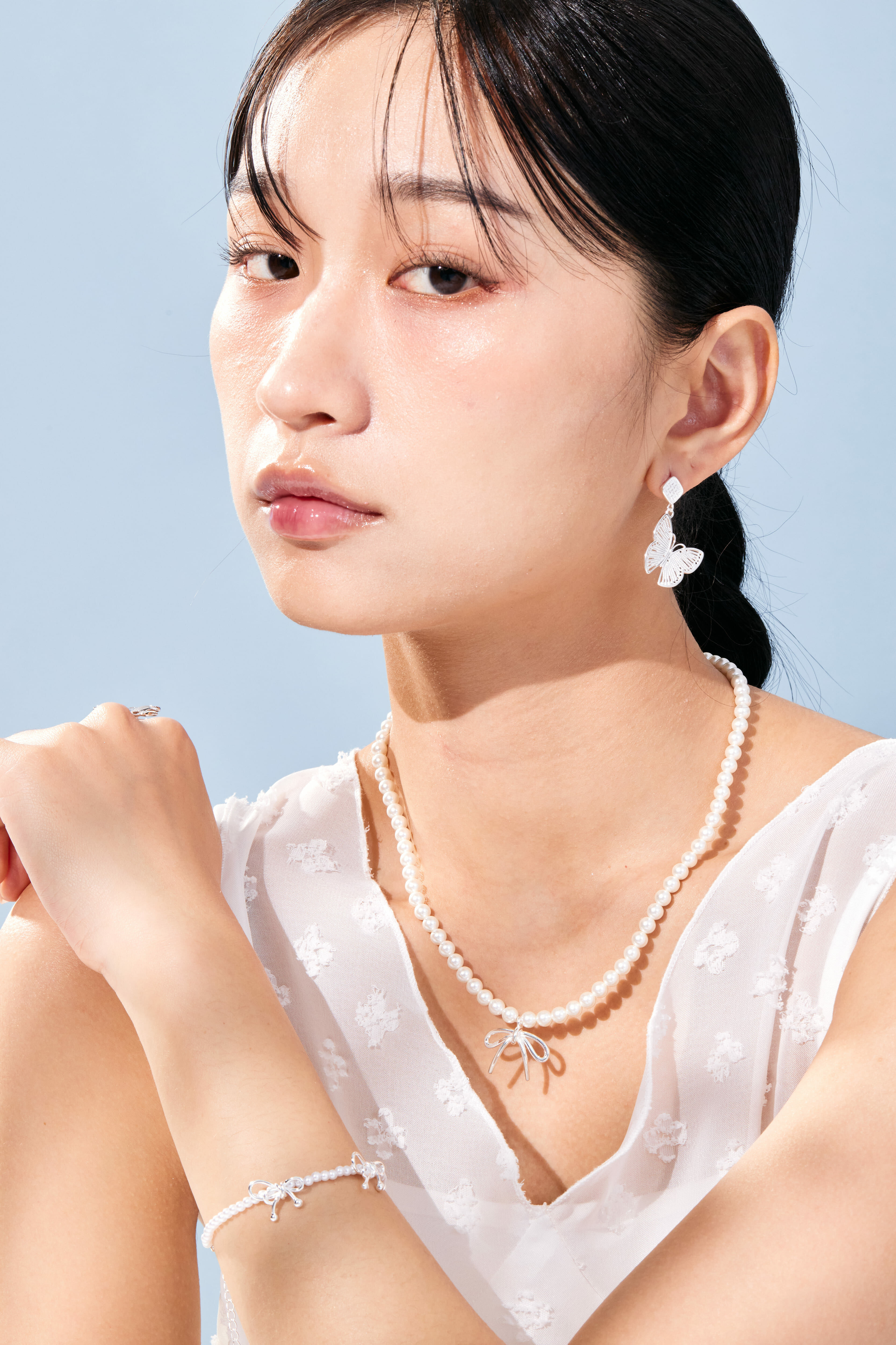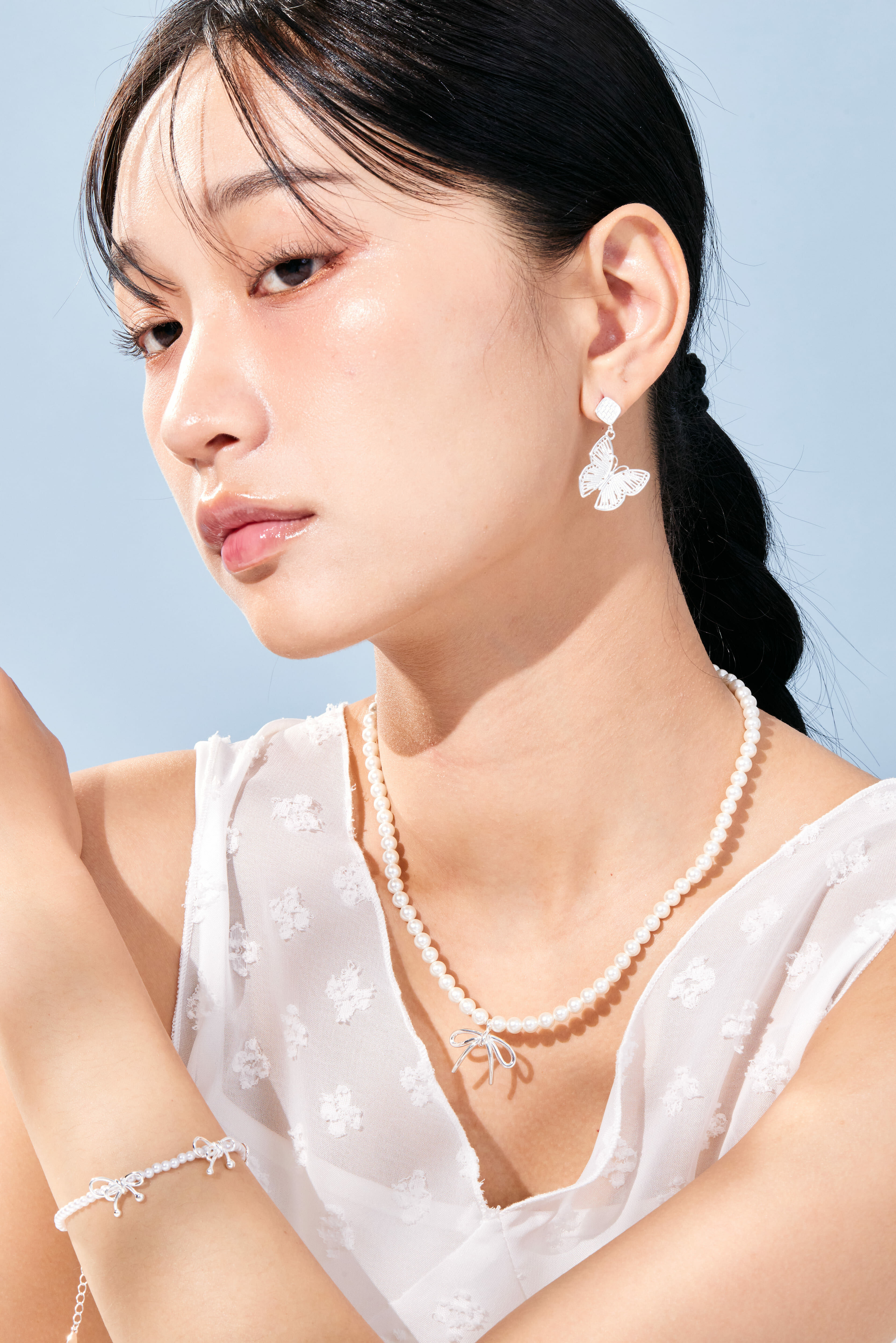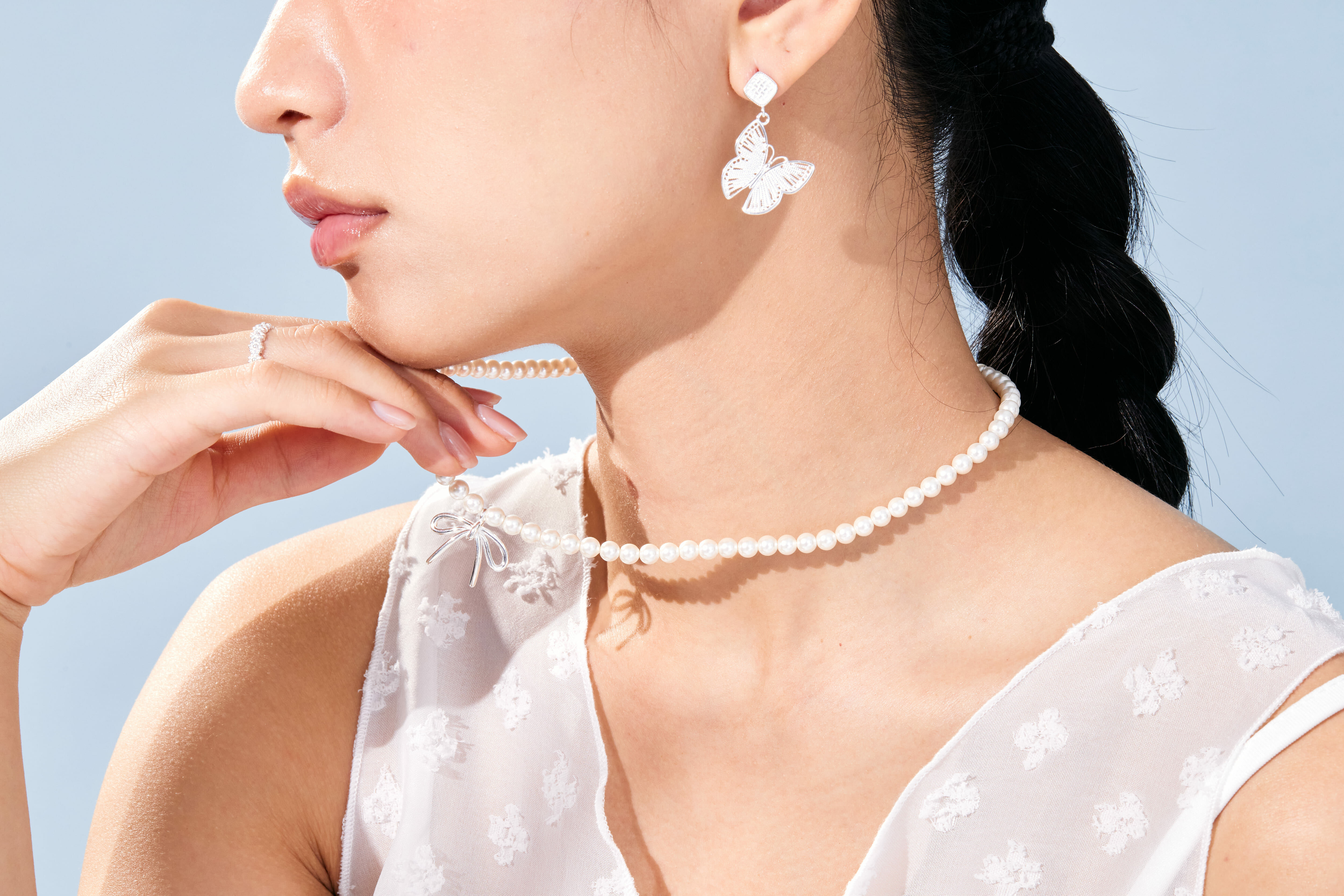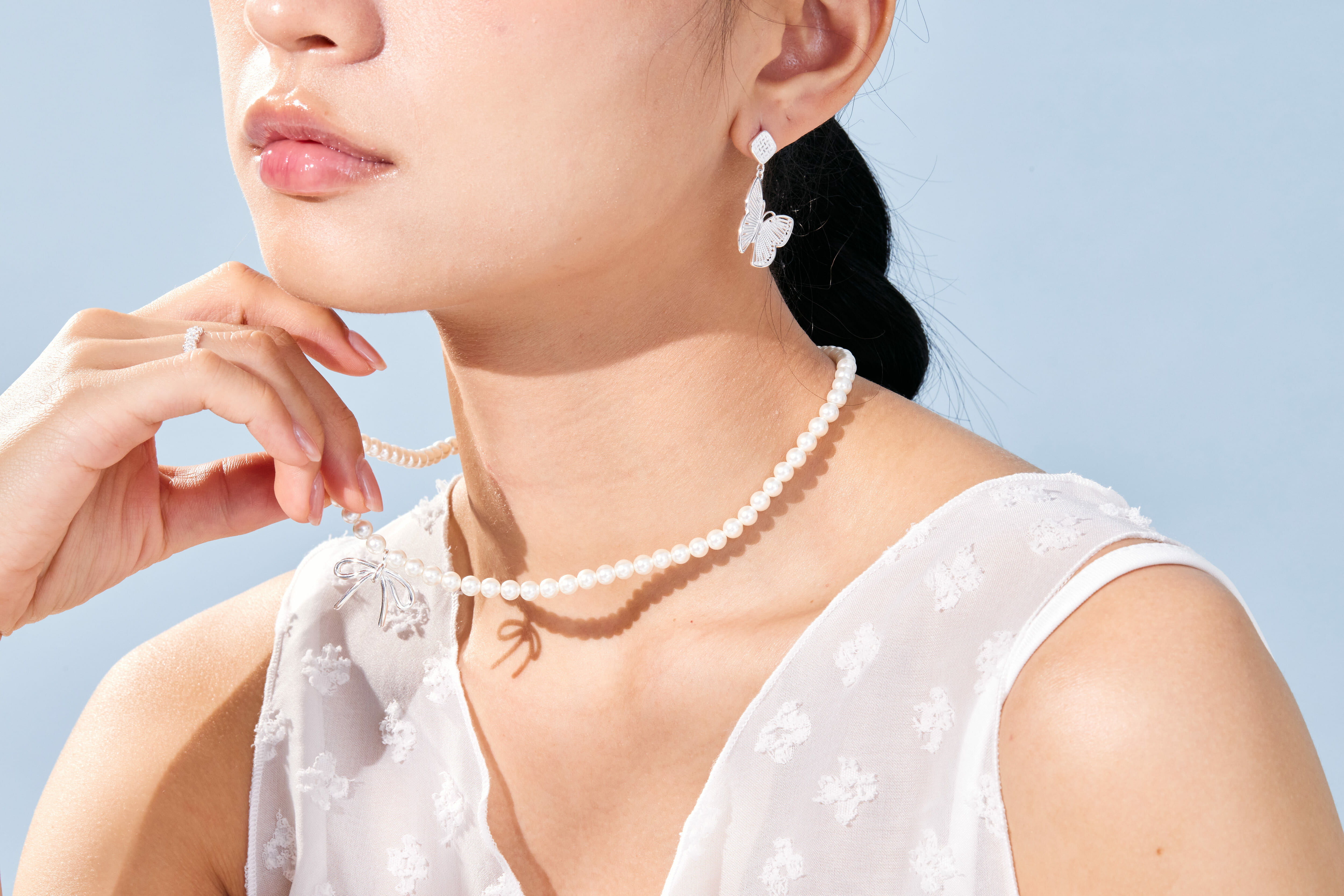 -經典珍珠項鍊X純銀蝴蝶結